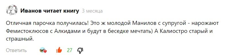 Давайте обратимся к фильму Марка Захарова "Формула любви". Итак, в 1984 году: Нодару Мгалоблишвили было 53 года Александру Михайлову 23 года Елене Валюшкиной 22 года. Я спросил читателей: почему же Маша предпочла смелому, отважному, находчивому графу малохольного нытика и бездельника Федяшева? И получил ворох однообразных ответов. И таких комментариев было еще штук 100. Иными словами: Калиостро старый мошенник, лучше молодой здоровый крепостник Федяшев. А теперь переходим к "Гардемаринам". 1988 год. Михаил Боярский - 39 лет Сергей Жигунов - 25 лет Татьяна Лютаева - 23 года И хотя разница не в 30 лет, как у Калиостро с Машей, но тоже вполне приличная. 16 лет - не шутка! Конечно, Белов не чета амебе Федяшеву. Смелый и отважный гардемарин, способный вступить в схватку с любым, кто встанет на его пути и отдать жизнь за друзей и любимую. К тому же, Белов в первую очередь защищает интересы России, а де Брильи, наоборот, действует против этих интересов. Между прочим, де Брильи авантюрист еще