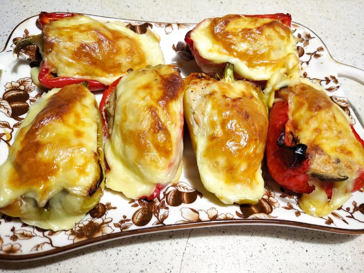Подготовить перцы: помыть,разрезать напополам,очистить от семечек