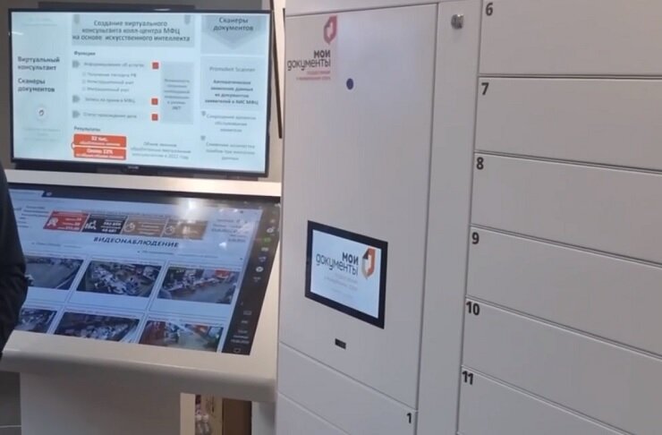 Если выбрать такой способ, то, когда результат оказания услуги поступает в МФЦ, специалист подходит к постамату и сканирует QR-код, сгенерированный при подаче документов. Открывается ячейка, внутрь кладутся документы для выдачи. При закрытии ячейки заявителю автоматически отправляется код доступа. Для получения документов ему необходимо ввести код, и ячейка откроется.