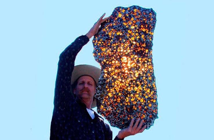 Внутри метеорита находились полупрозрачные золотые кристаллы минерала оливина, в окружении серебристого никель-железа. Это остаток образующейся планеты! Ученые считают, что эти метеориты исходят из глубины нетронутых метеоров, созданных во время формирования Солнечной системы около 4,5 миллиардов лет назад, и очень немногие образцы смогли попасть на Землю, преодолев атмосферу нашей планеты.