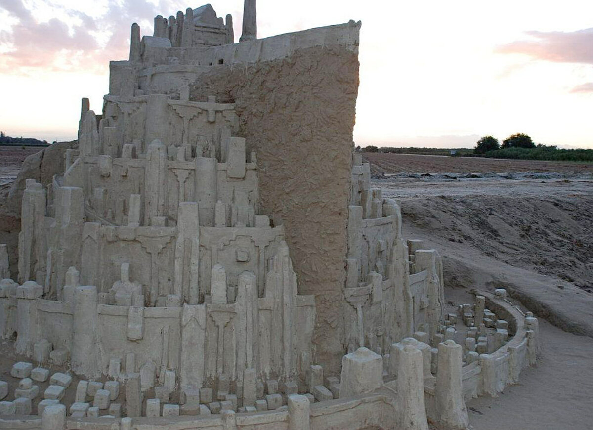 Кто из вас этим летом добрался до моря? Выехал на речку с песчаными берегами? Возможно, вы вспомните своё детство, когда из жидкого песочка под присмотром старших можно было возводить если не замки, то просто какие-то абстрактные конусы. Обычно мы даже не задумываемся над сюжетом – просто строим и этого достаточно. Давайте поглядим, как хорошо получается у взрослых. Узнаёте? Это замок Минас-Тирит из трилогии Питера Джексона. Его автор трудился над ним два лета, и в какой-то момент чуть его не потерял (зимой на него обрушился ливень). До этого он бережно укрывал его брезентом. Фото из 2013 года, что с замком сейчас – доподлинно неизвестно. Далее у нас какой-то футуризм. Кажется, что сделать лопаточкой ровные линии ничего не стоит, это проще простого!.. пока вы не попробуете. Это на мой взгляд сильно сложная скульптура, даже интересно, использовалось ли что-то скрепляющее в составе песка? Леонардо-да-Винчи ставит лайк всем замкам из этой подборки. Кто-то из Рио-де-Жанейро явно заморочил
