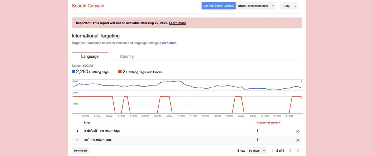 Google объявил в Twitter, что отчёт «Таргетинг по странам и языкам» в Google Search Console устарел и скоро будет удалён. Однако поддержка и использование тегов hreflang будут работать в обычном режиме. Вот этот твит: Отчёт будет удалён из интерфейса Search Console 22 сентября. Пользователи уже заметили предупреждение об этом в GSC и поделились скриншотом в Twitter: 👇🏻👇🏻👇🏻