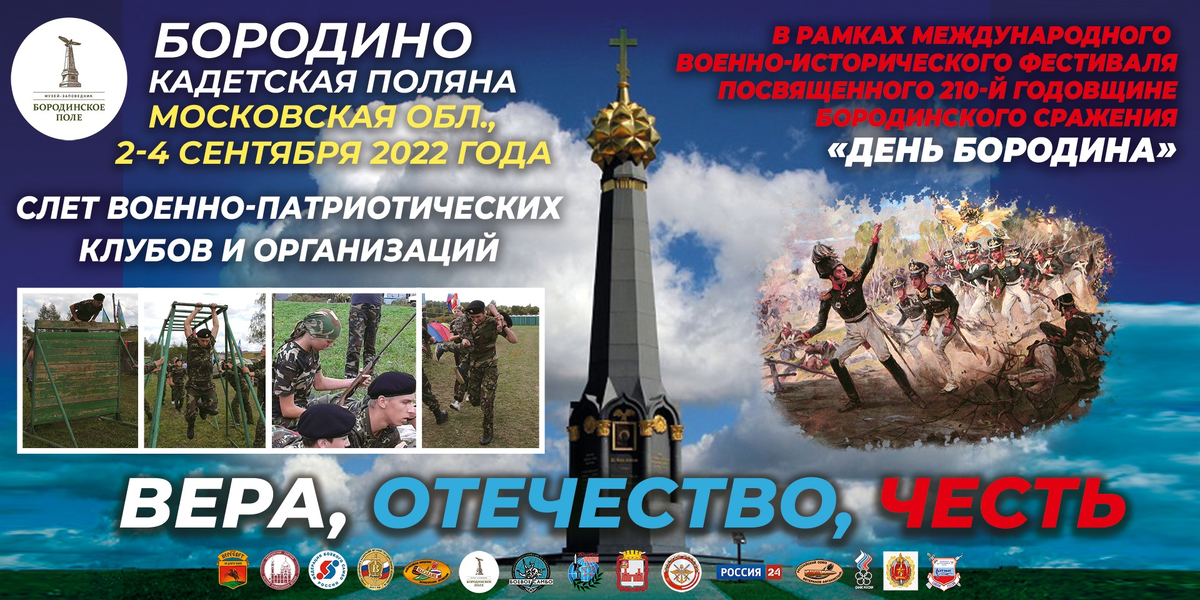 2-4 сентября 2022 года в рамках Международного военно-исторического фестиваля «ДЕНЬ БОРОДИНА» состоится слет военно-патриотических клубов и организаций «ВЕРА, ОТЕЧЕСТВО, ЧЕСТЬ».