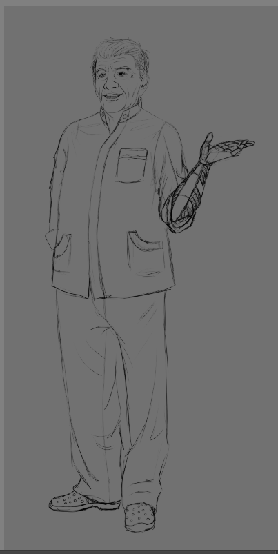 По ТЗ (техническому заданию) была задача: необходимо создать концепт пожилого мужчины, доктора. + Рост- 170- 180 см; + Возраст- 55- 60 лет; + Цвет кожи- белый; + Телосложение- плотный, округлый; + Цвет волос- короткие, седые; + Одежда- Цельный медицинский светлый (преимущественно белый) костюм; + обувь- Удобные ботинки (не спортивные).