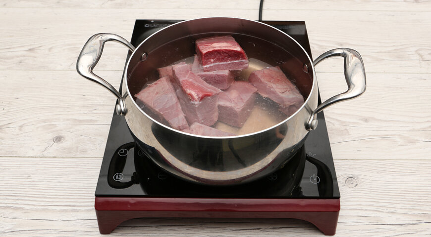 ИНГРЕДИЕНТЫ ПОШАГОВЫЙ РЕЦЕПТ ПРИГОТОВЛЕНИЯ Шаг 1 Приготовьте бульон для классического харчо с рисом. Для этого грудинку вымойте и крупно нарежьте. Сложите в кастрюлю и залейте холодной водой. Доведите до кипения и снимите шумовкой пену. Шаг 2 Коренья сельдерея и петрушки, а также морковь для харчо вымойте и очистите. Морковь и одну вымытую неочищенную луковицу разрежьте на половинки. Корень сельдерея нарежьте крупными ломтиками. Шаг 3 Подготовленные ингредиенты положите в бульон для харчо и варите 1,5 часа на среднем огне. За 20 минут до окончания добавьте лавровые листья, щепотку соли, а также горошины черного и душистого перца. Шаг 4 Бульон для харчо процедите через частое сито. Мясо отделите от кости и нарежьте небольшими ломтиками. Сложите в большую кастрюлю и залейте процеженным бульоном. Шаг 5 Помидоры для харчо вымойте. Оставшийся репчатый лук очистите. Стручки острого перца разрежьте вдоль на половинки и удалите семена. Помидоры нарежьте дольками, лук — тонкими полукольцами, ос