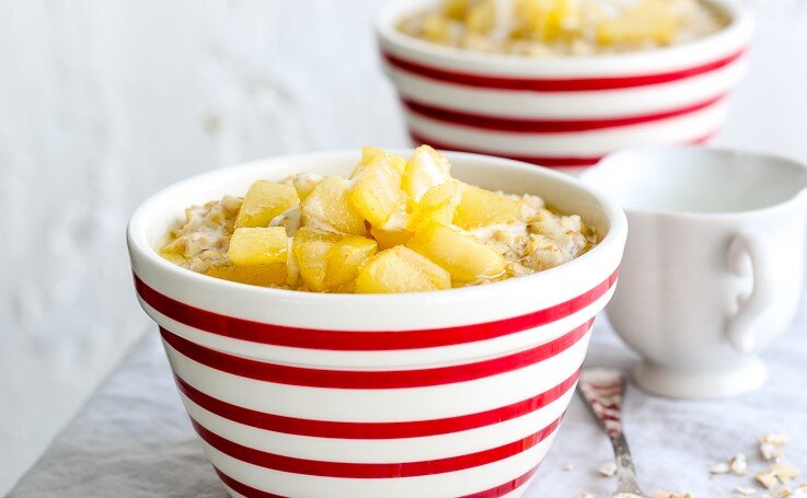 ИНГРЕДИЕНТЫ ПОШАГОВЫЙ РЕЦЕПТ ПРИГОТОВЛЕНИЯ Шаг 1 Хлопья положите в кастрюлю. Добавьте молоко, посолите. Доведите до кипения и кипятите на слабом огне, помешивая, 5-7 мин. Шаг 2 Груши очистите, разрежьте на 4 части. Удалите сердцевину и нарежьте небольшими кубиками. Обжарьте на сильном огне со сливочным маслом, 2 мин. Уменьшите огонь, добавьте сахар и готовьте ещё 1-2 мин. Шаг 3 Кашу разложите по мискам или тарелкам. Разложите груши. Добавьте натуральный йогурт и сбрызните медом. Сразу подавайте.