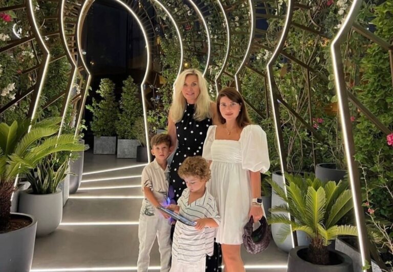 Дочь знаменитого кутюрье Валентина Юдашкина, Галина, уже два года проживает в Гонконге. Девушка продолжает работать в Модном доме отца, создавая детскую коллекцию. В Корею Галина перебралась из-за работы мужа, здесь же ее старший сын пошел в школу. Юдашкина давно не появлялась в России. А в этом году стало известно, что она стала мамой в третий раз. Галина родила долгожданную дочку, которую назвали Агатой Ариелой. Валентин и Марина Юдашкины побывали в гостях у дочки, навестили внуков и познакомились с малышкой. Однако пришло время родителям уезжать от Галины. К сожалению, им не удается видеться так часто, как хотелось бы. Марина Юдашкина сообщила своим поклонникам, что уже вернулась в Россию. Примечательно, что она прибыла на Родину не только с супругом, но и с внуками Анатолием и Аркадием. Женщина опубликовала фотографию, которая сделана во дворе особняка Юдашкиных. Стоит отметить, что двор Марина украшала своими силами, сажала цветы и деревья, самостоятельно делала скамейки. В кадре