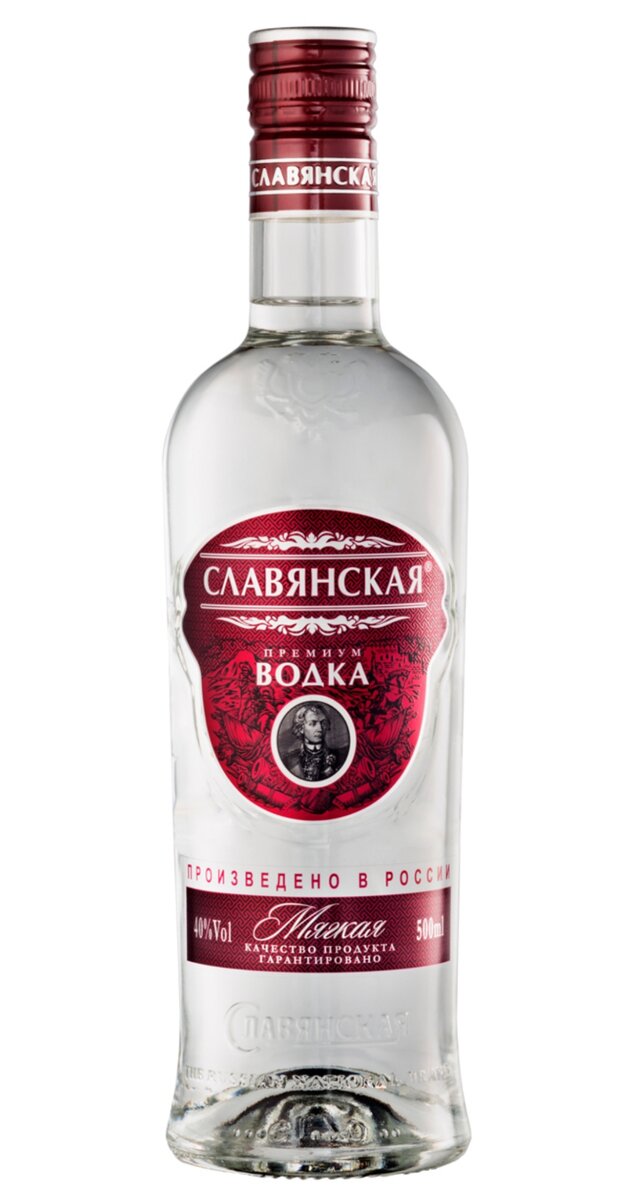 Водка очень специфический напиток, с крепостью 40 %об.но есть и исключения где бывает от 40 %об. и до 60 %об. но есть и выше, но это идут не большие партии и продажа разрешена не во всех регионах России. Правила питья водки, это закуска и запивка, нету строгих правил по этому алкоголю, все пьют как больше нравится, но факт того что залпом пить её проще и из-за этого вкус водки особо не нужен, самое главное чтобы спирт был хорошего качества и мы сегодня поговорим о таких напитках. Подача водки идет холодная, но не ледяная, специальной посуды нет подходят обычные рюмки, но если вы делаете коктейли то вам нужны другие бокалы, и не считается аперитивом, коктейлей их многое множество, как и их видов, так как водка зарекомендовала как хорошая основа. И интересная информация водка в массах появилась 6 декабря 1886 году и называлась по разному и пенник, и самогон, а вод водкой началась называться начлась после революции 1917 года. 5. Славянская ~261 р. за 0,5 л. Производитель Gross извест