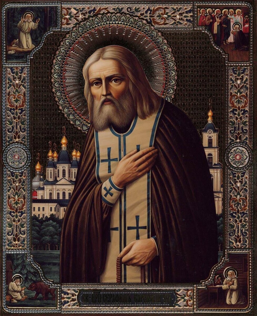 «О, великий и пречудный отче Серафим, известный Саровский чудотворец, ты для всех прибегающих к тебе скоропослушный помощник! В дни земной жизни твоей никто не уходил от тебя, не получив твоей помощи и поддержки. Все находили возле тебя утешение и понимали, что нужно делать для дальнейшего своего благополучия. Твой дар прозрения и исцеления помог многим людям. Когда призвал тебя Господь Бог на небеса, после окончания твоей земной жизни, твоя любовь к людям проявлялась в том, что откликался ты на молитвы страждущих. Невозможно перечислить все те чудеса, которые ты свершал, услышав мольбу о помощи. Ты даровал чудо исцеления от страшного недуга в самых тяжелых случаях. Помоги мне, Рабу Божьему (собственное имя) обрести силы для борьбы с болезнью. Моли Господа Бога о прощении всех моих ведомых и неведомых прегрешений, ибо я искренне раскаиваюсь в них. Проси Всемогущего направить меня на истинный путь, ибо принимаю я волю Его и повинуюсь Ему во всем. В благодарность за исцеление буду я мо