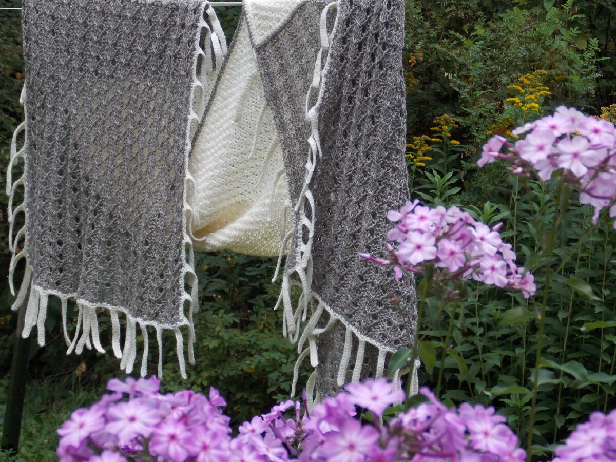 Пора вязать тëплое, обнимающее, красивое, ласковое и огромное. Уютный, волшебный палантин-шарф нужно приготовить летом, как велит мудрость народная, веками проверенная. Осень уже скоро дохнëт холодом – пора утепляться! Готовьте мягкую пряжу, спицы и крючок - и поехали. Расскажу, как я однажды крылатое чудо сочинила. Этот палантин – вещь на всю жизнь и в наследство. Использовалась настоящая деревенская шерсть белого и серого цвета. Для мягкости и пушистости можно добавить к тонкой шерсти ниточку мохера. Его интереснее выбрать уникальную шерсть сложного состава и редкого цвета, узор ажурный приискать поинтереснее, тогда получится редкий подарок родному человеку или лучшей подруге. Палантин у меня получился солидный, длиннющий – 240 см. Ширина 55 см. По весу уже и не помню, но были 3 мотка, 1 белый и 2 серых. Конструкция придумалась просто - связала белую часть, потом справа и слева добавила "крылья" ажурным несложным узором. Если нитки бы оказались тоньше, узор поискала бы интере