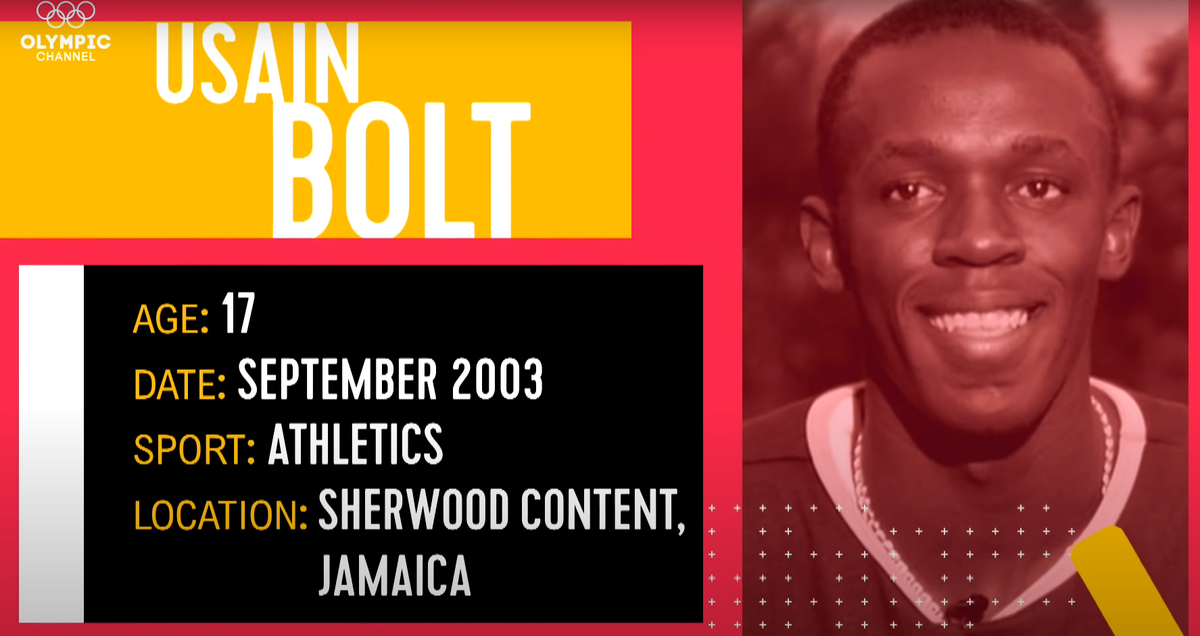 Официальный канал олимпийских игр на ютубе 19 лет назад взял интервью на английском языке у Усейна Болта. Как он видит себя в будещем, каким успехов удалось добиться на данный момент и что самое главное в спорте, профессиональном спорте. На эти и ряд других вопросов постарались ответить и 2 других героя выпуска - Dwight Barnett, учитель физической культуры в школе Вильяма Нибба, где учился Усейн в возрасте 17 лет и Norman Peart, менеджер Усейна, который помогает ему достать все необходимое для тренировок. Каким был Усейн в 17 лет "Он хотел стать Олимпийским чемпионом и это был не легкий путь" - так прокомметировал этот вопрос Dwight Barnett. Как говорил сам спортсмен, горизонт его планирования не был настолько большим, чтобы фокусироваться на олимпийских играх. Он жил от тренировки до тренировки и просто выкладывался на максимум, хоть и сами занятия проходили на пришкольной территории не с самым амбициозным тренером. Но надо отдать должное Усейну, ему удалось достичь очень хорош