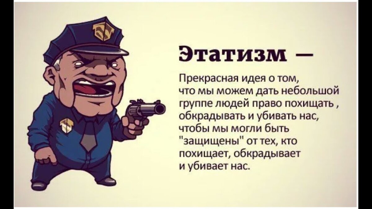 Смысл этатизма, как явления, можно объяснить примерно следующими словами: «Этатизм – это прекрасная идея о том, что мы можем дать небольшой группе людей обкрадывать нас, чтобы мы могли быть «защищены» от тех, кто обкрадывает нас.»