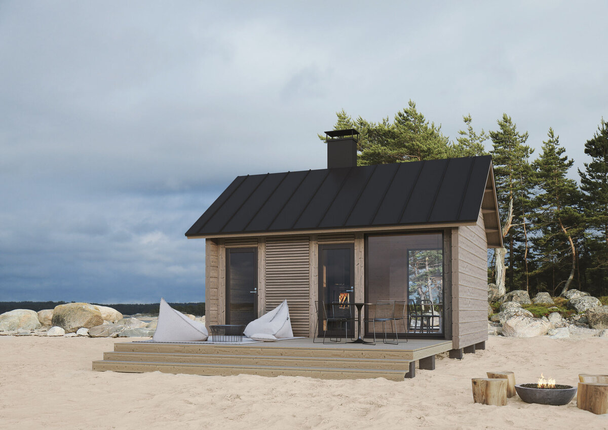Баня в современном стиле имеет небольшую террасу, на которой можно отдохнуть после посещения парной. Вход в банное отделение может быть выполнен из зоны отдыха, на усмотрение заказчика. Баня включает парное отделение, помывочную зону, зону отдыха и столовую с мини-кухней.