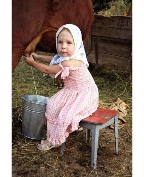 Ей одиннадцать. Ну, там сено поворошить, воды принести. Но доить!