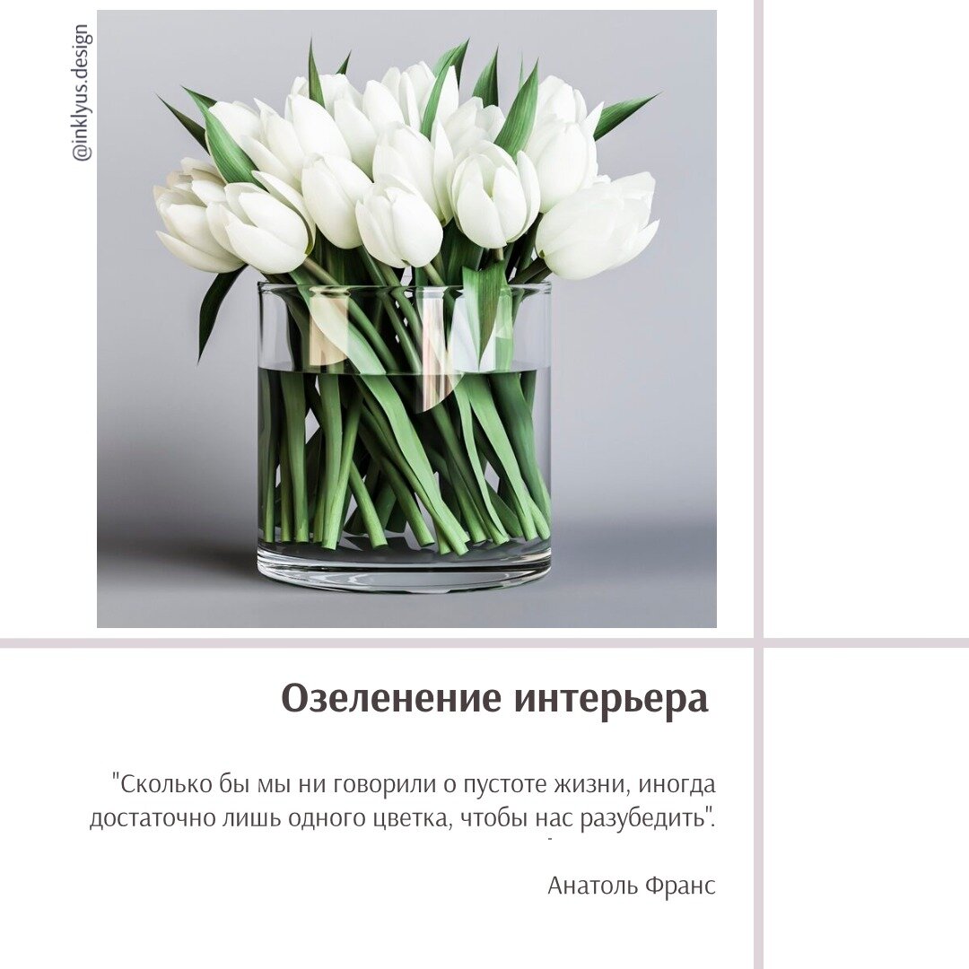 Растения в интерьере дают ощущение присутствия частички природы в доме. Цветы придают свежести, создают атмосферу, снижают количество токсинов в воздухе и улучшают его качество, а также очень положительно влияют на нам эмоциональный фон человека. Если вы задумались о приобретении цветов в свой интерьер, рекомендую рассмотреть алгоритм анализа и выбора подходящего материала, места, формы для облегчения озеленения своего пространства: 1. Прежде всего определяемся с функцией цветов в интерьере. Попросту говоря, назначением цветов у вас дома. Да, да именно. Это очень важно, чтобы потом не пристраивать цветы по знакомым, поняв в какой то момент, что вы не этого эффекта ожидали от них. Какие есть варианты: зонирование пространства, декор, маскировка (заполнение пустот, какие-то недочеты в ремонте), акцент (для оживления пространства), отделка (фито стена), мини огород, а может это просто ваша страсть. 2. Анализируем пространство для озеленения – это место и его размеры, освещенность – это