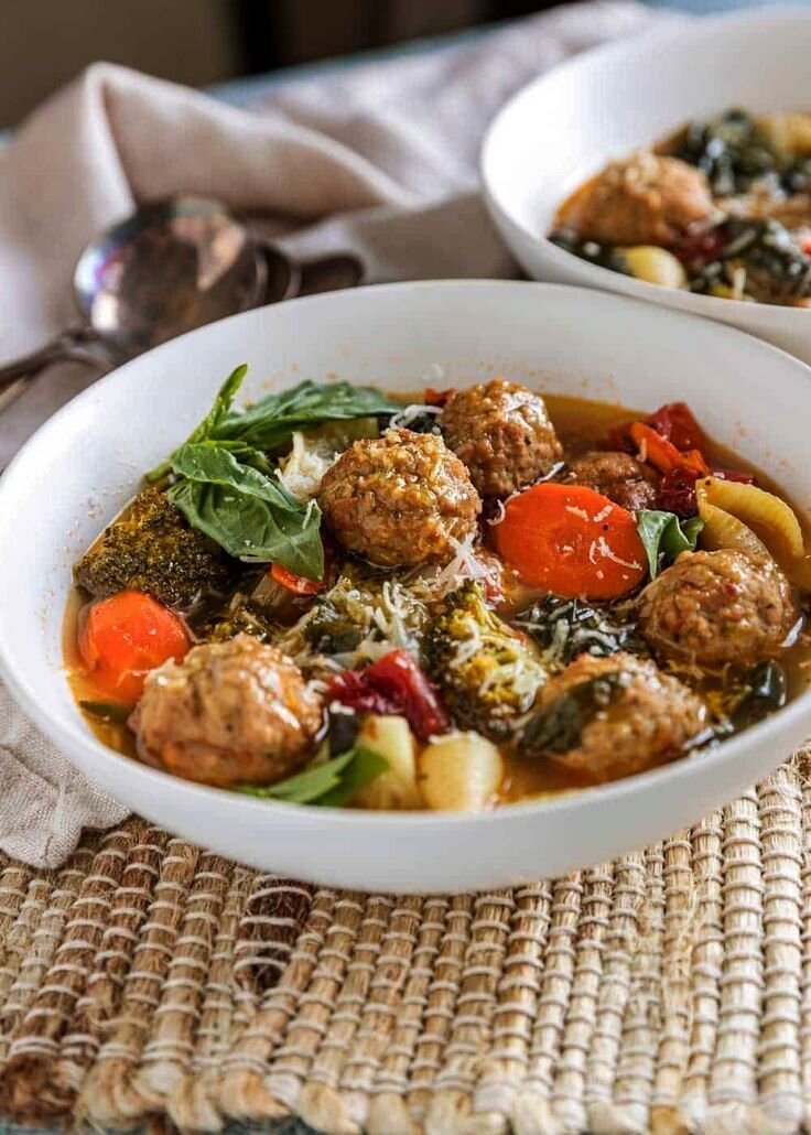 1. В чашу мультиварки налить воды и установить режим “Мультиповар” на 30 минут. 2. Очистить помидоры от кожуры. Для этого сделать на них крестообразный надрез и окунуть на минуту в кипяток. 3. Картофель и цуккини нарезать кубиками. Брокколи разделить на соцветия 4. Мелко нарезать помидоры. Все овощи добавить в мультиварку как только вода закипит. Посолить. 5. В куриный фарш добавить соль, черный молотый перец и яйцо. Хорошо размешать и сформировать тефтели. Добавить к овощам через 10 минут. 6. Варить еще примерно 10 минут. Выключить и оставить на подогреве на 5-10 минут. Приятного аппетита! #рецепты #еда #кулинария #обед #суп #полезныерецепты #овощнойсуп #длядетей #фрикадельки Подписывайтесь и с легкостью следите за новыми рецептами! 💛
