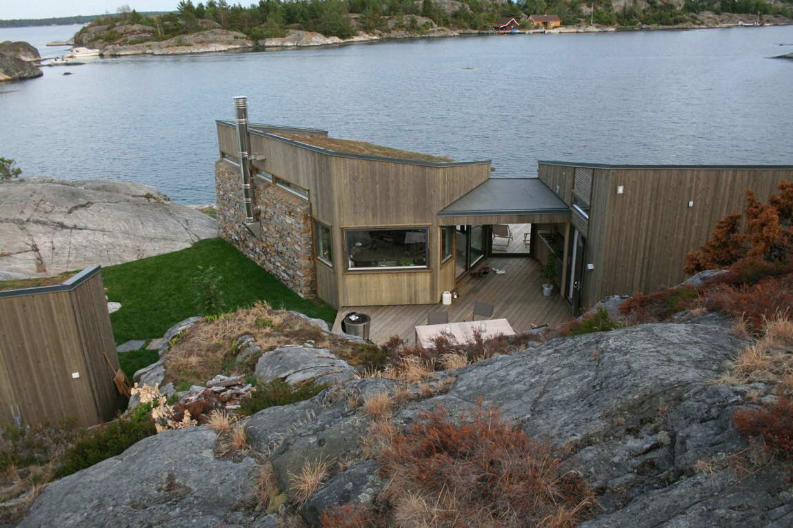 Этот небольшой дом для загородного отдыха построен на удивительном по красоте экстремальном участке в норвежских фьордах. Дом построен вместо старого у самого берега, на скалах и в окружении скал и валунов. Два небольших объёма функционально разделяют общую и спальную зоны и, изгибаясь, образуют небольшой дворик...