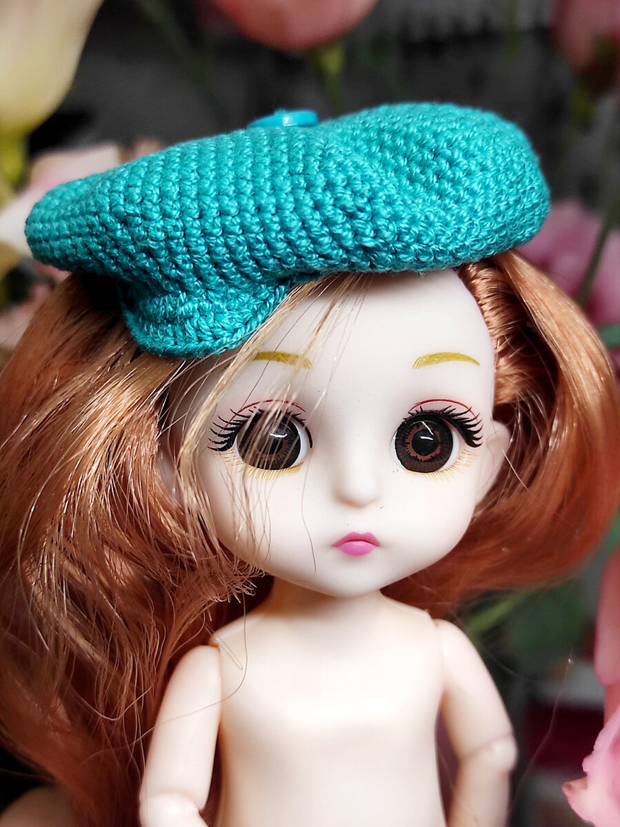 Автор описания @Ami_miniatura Миниатюрное вязани Использованные материалы: 🧶 Пряжа Пехорка ажурная 280 м / 50 г🧶 крючок 0'8 мм 🧶 Пуговка в цвет 1. 8 сбн в КА 2. 8 пр (16) 3. (1 сбн, пр) х 8р (24) 4. (2 сбн, пр) х 8р (32) 5. (3 сбн, пр) х 8р (40) 6. (4 сбн, пр) х 8р (48) 7. (5 сбн, пр) х 8р (56) 8. (6 сбн, пр) х 8р (64) 9. (7 сбн, пр) х 8р (72) 10. (8 сбн, пр) х 8р (80) 11. (9 сбн, пр) х 8р (88) 12. (10 сбн, пр) х 8р (96) 13-14. 96 сбн 15. (10 сбн, уб) х 8р (88) 16. 88 сбн 17. (9 сбн, уб) х 8р (80) 18. 80 сбн 19. (8 сбн, уб) х 8р (72) 20. 72 сбн, сс Далее вывязываем козырек: 2 сс , 2 пр ,8 пр из псн, 2 пр, 2 сс Петля подъёма и вяжем в обратную сторону: 2 сс, 4 сбн, 16 псн, 4 сбн, 2 сс. Пришиваем пуговку и кепочка готова.