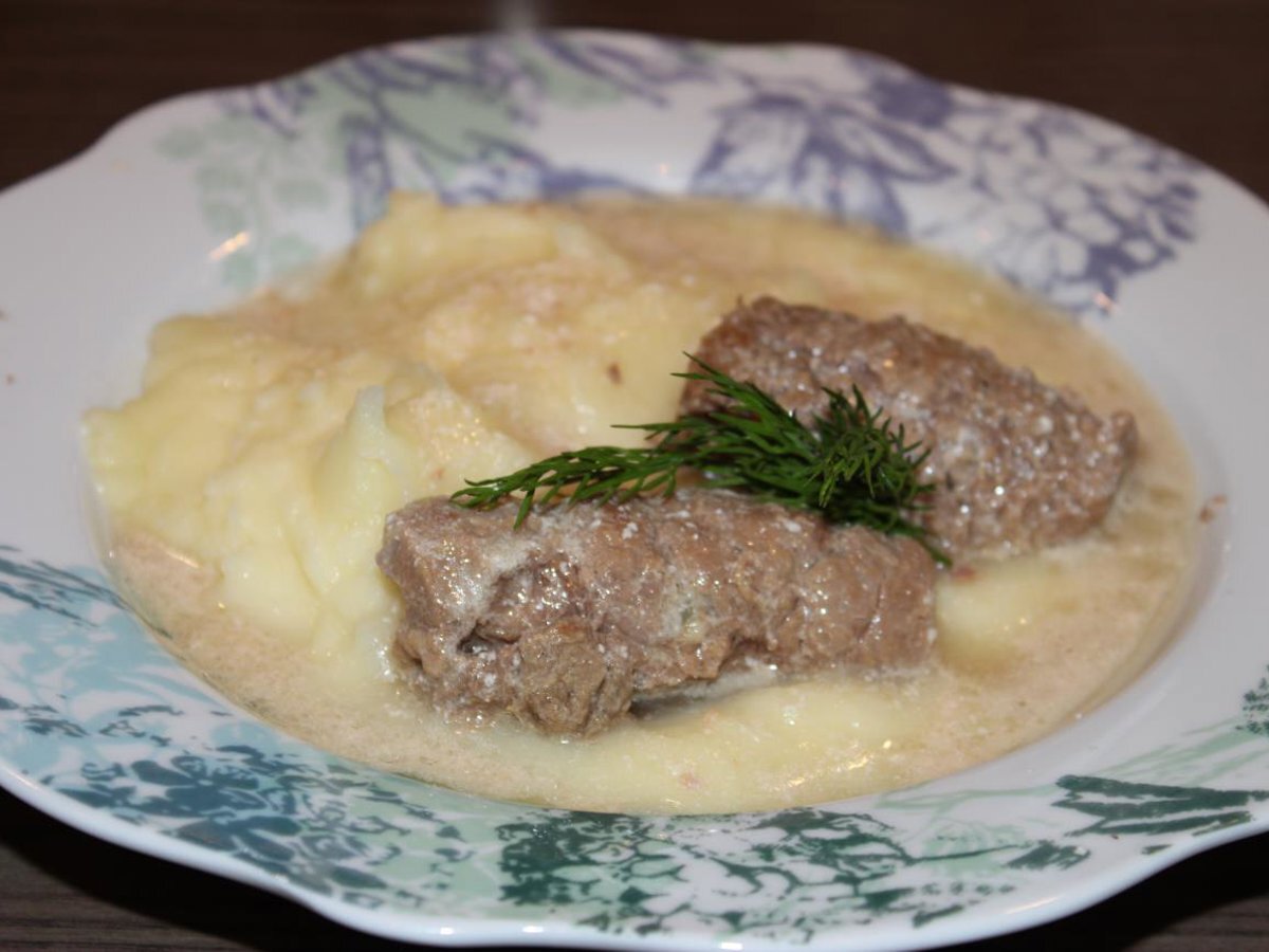 Прекрасное блюдо из мяса! Ингредиенты Приготовление: 1. Мясо нарезаем кусочками толщиной 1-1,5 см. Для этого рецепта можно использовать и свинину и говядину, и даже курицу. Принципиальной разницы нет. Различие лишь во времени приготовления 2. Отбиваем молотком с двух сторон. Каждый кусочек посолить и поперчить, но с учётом того что мы будем использовать солёное сало и солить соус, в котором будут тушится пальчики. 3. Маринованные огурцы и сало режем тоненькой соломкой, 4-5 зубчиков чеснока выдавливаем через пресс для чеснока. Это начинка для рулетов. 4. В каждый отбитый кусочек мяса с одной стороны выкладываем пару кусочков сала, пару-тройку кусочков огурца и немного чеснока (по вкусу). 5. Закручиваем мясо в виде рулета. 6. Каждый рулетик после скручивания обвязываем ниткой (лучше взять цветную обыкновенную швейную нитку). Фиксируем каждый пальчик ниткой и оставляем свободным длинный кончик нитки. 7. Выкладываем в сковороду, предварительно разогрев растительное масло. 8. Обжариваем со