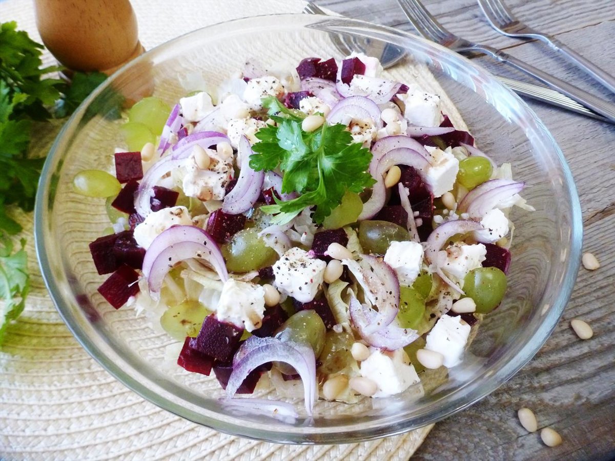 Салат со свеклой, виноградом и брынзой