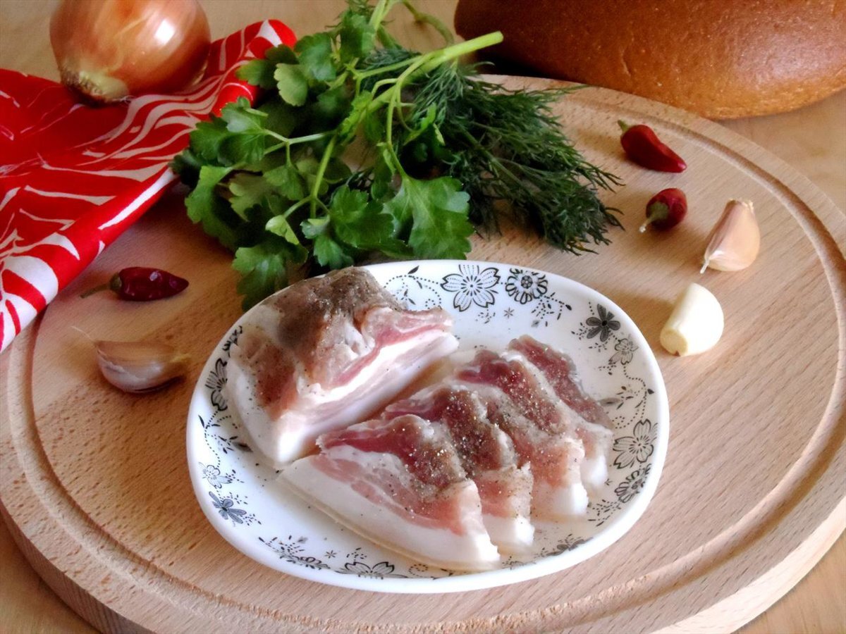 Сало- это уникальный продукт, благодаря ряду ценных жиров, содержащихся в нем. Магазинное сало никогда не сравнится с домашним. Конечно, злоупотреблять им не стоит, но настоящие любители все же могут побаловать себя несколькими кусочками вкуснейшего домашнего сала, которое вы легко сможете приготовить сами! Ингредиенты Приготовление: 1. Сначала необходимо выбрать кусок жирной свинины для засолки: сало должно быть по цвету молочно-белым или слегка розоватым, а возле самой шкурки нож или вилка должны входить в сало легко, будто в масло- это означает, что соленое сало будет мягким. 2. Сало обмыть, поскоблить ножом и нарезать на небольшие кусочки приблизительно 5см*5 см. 3. В миску насыпать соль и обвалять кусочки свежего сала со всех сторон. 4. Сало сложить в полиэтиленовый пакет, а пакет в кастрюлю, в которой сало будет солиться в течении 3 дней. Через сутки сало нужно достать, слить образовавшуюся жидкость, снова посыпать солью прямо в пакете и поставить на дальнейшую просолку в прохла