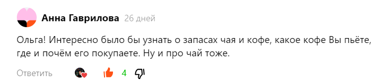 И расскажите, что любите вы, какой чай или кофе. Какой кофе теперь покупаете, в нынешних условиях.