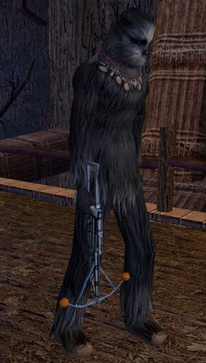 Этот энергетический арбалет служил личным оружием вождя вуки Чуундара до его смерти. В арбалет были установлены некоторые модификации корпорацией Цзерка, что делало его более точным и позволяло наносить больший энергетический и физический урон. Тем не менее, большинство вуки сочли бы такую доработку личного оружия чужаками неприемлемой. Вуки, в буквальном переводе «народ деревьев» — разумная раса волосатых двуногих гуманоидов, которые жили на планете Кашиик. Один из самых известных представителей расы — Чубакка, друг Хана Соло и второй пилот «Тысячелетнего сокола», который сыграл важную роль в гражданской войне и после неё. Среди вуки встречались и джедаи, хотя такие случаи были крайне редки. Естественная среда обитания для вуки — это густые леса Кашиика (хотя существует мнение, что они прибыли сюда с другой планеты). Кашиик покрыт огромными деревьями врошир, на которых вуки строили дома, города и поселения. По некоторым данным, вуки произошли от живших на деревьях млекопитающих сущест