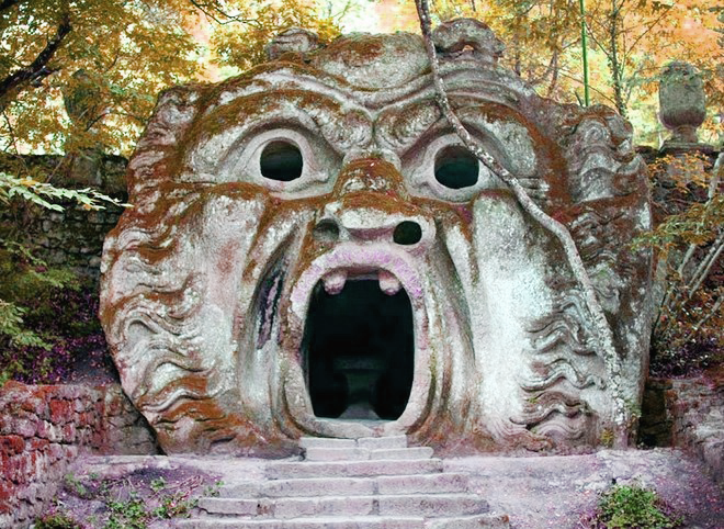 Священный лес место где возрождаются детские фантазии, это своеобразная сказка, где оживают чудовища и кажется, что ты попал из современного мира в эпоху Средневековья. Довольно зловещее, но красивое место в Италии. Находится в городке Бомарцо, в парке около тридцати вдохновленных мифологией скульптур и фантастических построек, поросших мхом. История создания жутких скульптур Священный лес является памятником садовой архитектуры эпохи Ренессанса. История его создания доподлинно неизвестна. Считается, что его основал герцог Франческо Орсини в середине 16 века для своей любимой жены Джулии Фарнезе, но сожалению, жена герцога трагически погибла еще до окончания строительства уникального парка. В память о ней на возвышенности был возведен Храм вечности. Франческо Орсини создал довольно оригинальный парк, населив его мифическими персонажами и сказочными существами. Имитация леса, в котором очень легко было потеряться. У историков вызывают споры и недоумения, почему же при строительстве пар