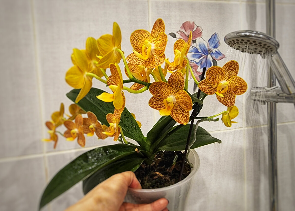 Периодический душ рекомендуют не только для орхидей. Польза мероприятия очевидна: помылись, умылись, слетела пыль и вредители. Но бывает, что после душа фаленопсис гниет или сбрасывает цветы. Почему? Рассказываю, что отметила я. С вас "лайк" и поехали :) Обязателен ли душ для орхидей Нет. Орха спокойно может обойтись без ваших подвигов и стресса в виде контрастного душа. Конечно, душ орхидеям полезен: Но если их не мыть, ничего не случится: Почему орхидеи после душа болеют Если вода сильно горячая, растение может просто стрессануть. То же самое, если сильно холодная. Если после душа вы выносите их на сквозняк, под палящее солнце или на ледяной подоконник - тут все как у детей: "сопли" обеспечены. Если напор воды сильно большой, после душа вы промакиваете серединку, точку роста просто можно повредить. Чтобы растение воспринимало душ, как вы - отпуск на море, надо просто соблюдать несколько правил. Как правильно помыть орхидею в дУше Вот и все. Если дома достаточно света, тепла и возд
