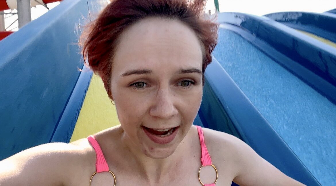 ««Золотая Бухта» Самый большой открытый аквапарк в России. Его площадь составляет 15 га. На территории расположены 69 спусков, 49 горок, 10 водных аттракционов и 8 бассейнов…» Этого всего я не знала, пока не зашла на сайт и не изучила инфо и правила парка. И сделала это уже после посещения, из любопытства - что ещё я нарушила, кроме спуска с большой горки с телефоном. Вообще, ожидания от парка были такие: мы с Сашей катаемся с разных горок, с тех, что побольше, катаемся вместе. С тех, что пострашнее, для взрослых - я одна. Все наше веселье снимаем и делаем динамичный экшн влог с брызгами, визгами… ( тут надо поставить короткий звук зажёванной пленки, какой можно услышать на моменте, когда герой очнулся и возвращается в реальность) А реальность такова: Саша почти весь день провела в одном месте на горках для самых маленьких. Все остальное было страшно ей. Я взяла телефон и пошла для начала не на самую большую горку снимать свой спуск. Первый раз инструкторы не заметили нарушителя