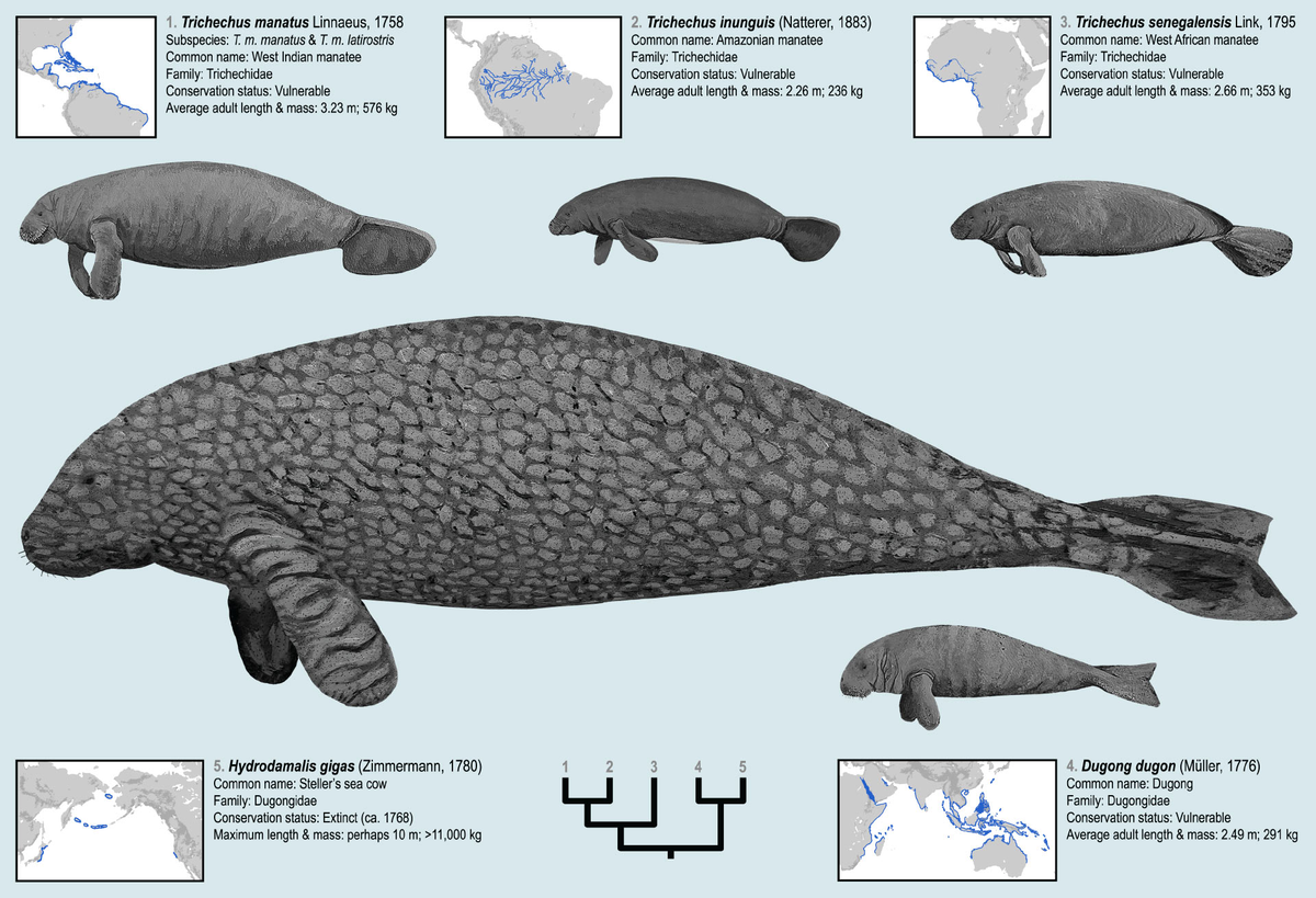 Также известные как сирены, эти животные уникальны тем, что являются единственными полностью водными млекопитающими, которые также являются обязательными травоядными, и их среда обитания преимущественно теплая, прибрежная и относительно мелководная.