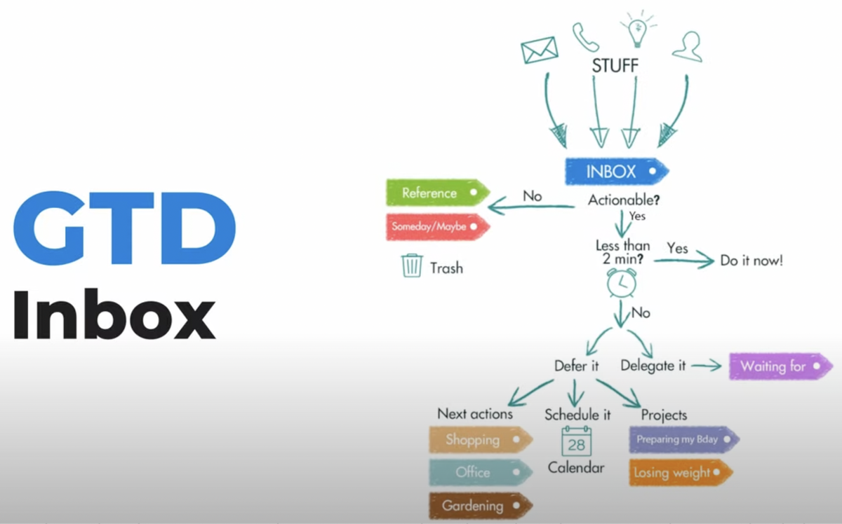"Помогает разгрузить голову и сосредоточится на решении конкретных задач. Дел много, за что взяться в конкретный момент не знаешь. Есть ящик входящие (inbox), в который Вы «валите» все подряд. Главное быстро записать и выкинуть из головы. Периодически, вы разгребаете этот ящик, распределяя дела по направлениям и контекстам и в любой момент вы знаете, что сделать."