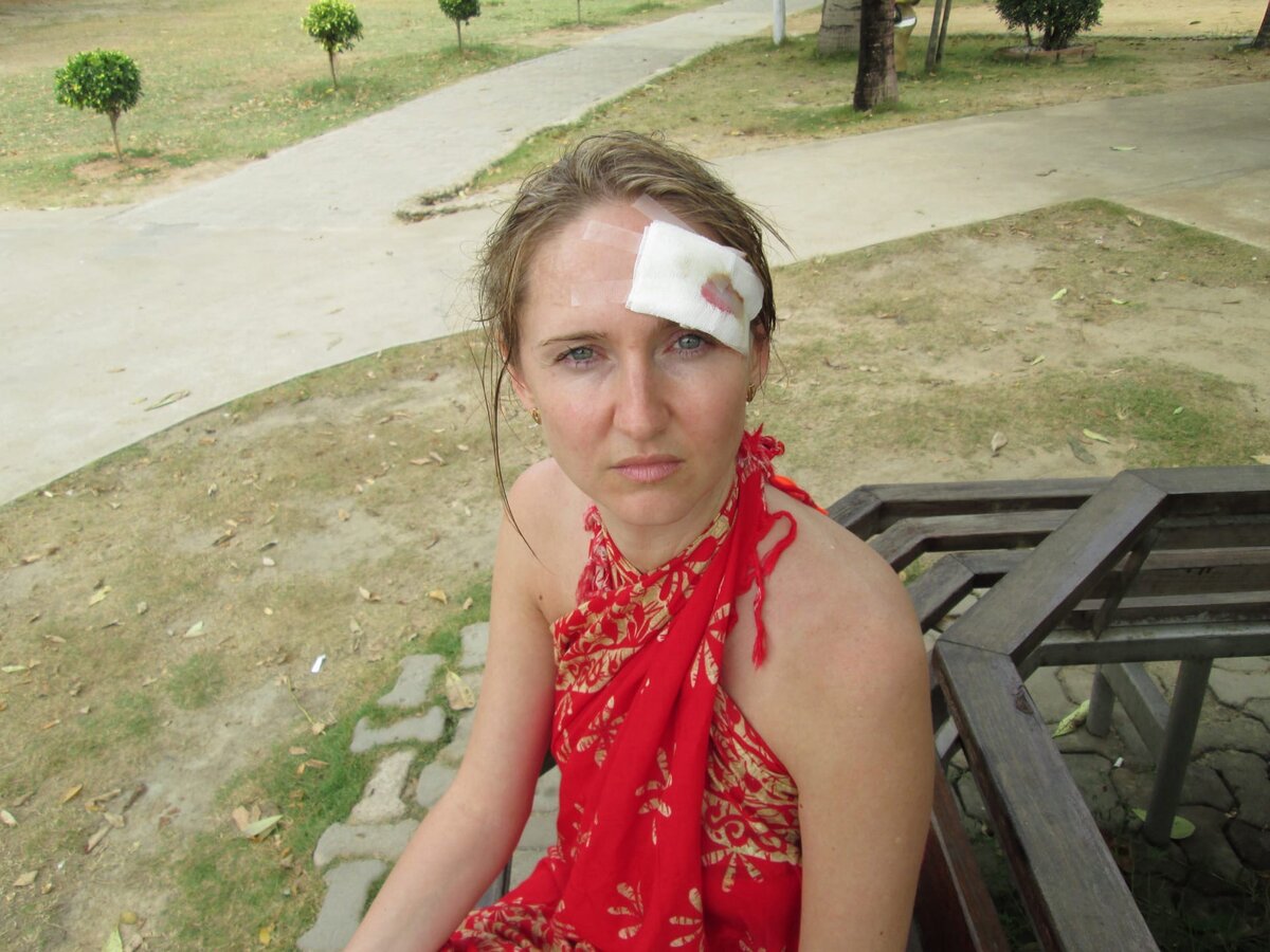 Подбежавший гид и мой #муж схватили меня под руки и повели в сторону тайских хижин. Узрев живого персонажа из фильма Тарантино, тайцы испуганно замяукали и бросились в рассыпную. Но позже все-таки залепили дыру в моей голове подручными средствами, выделили нам микроавтобус, и гид повез меня в госпиталь.