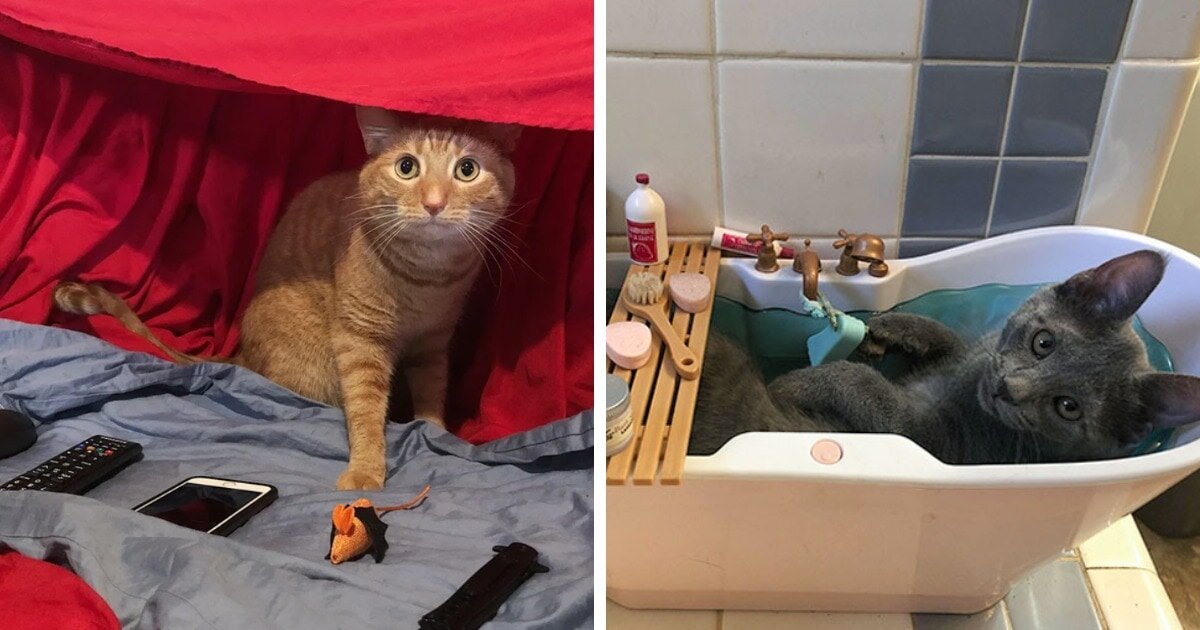 Вряд ли найдётся хоть один владелец кота, который никогда бы не поддавался соблазну как следует побаловать своего питомца. Ну как можно удержаться, глядя на эти пушистые лапки и просящую мордочку? Правда, иногда мордочка оказывается очень даже требовательной, и градус баловства стремительно повышается — сегодня вы просто строите для кота домик из одеял или угощаете его лобстером, а завтра уже… Ну, делаете что-то такое, например! Один из наших котят предпочитает спать в ванночке для кукол моей дочери Не мазать же их кремом для защиты от солнца? Мама говорит, что наши котята ужасно избалованы, но я нисколько не согласна Наш кот любит домики из одеял, поэтому мы построили ему это Каждый раз, как кошка видит у меня бокал, она тоже требует свой «коктейль» Кладу рядом дополнительный ноутбук, чтобы кот дал пользоваться моим собственным Друг обустроил для своего кота уютный гамак Когда-нибудь пробовали лобстера? А вот он пробовал Каждый вечер я вожу их смотреть на закат и птичек… Муж сообщил,