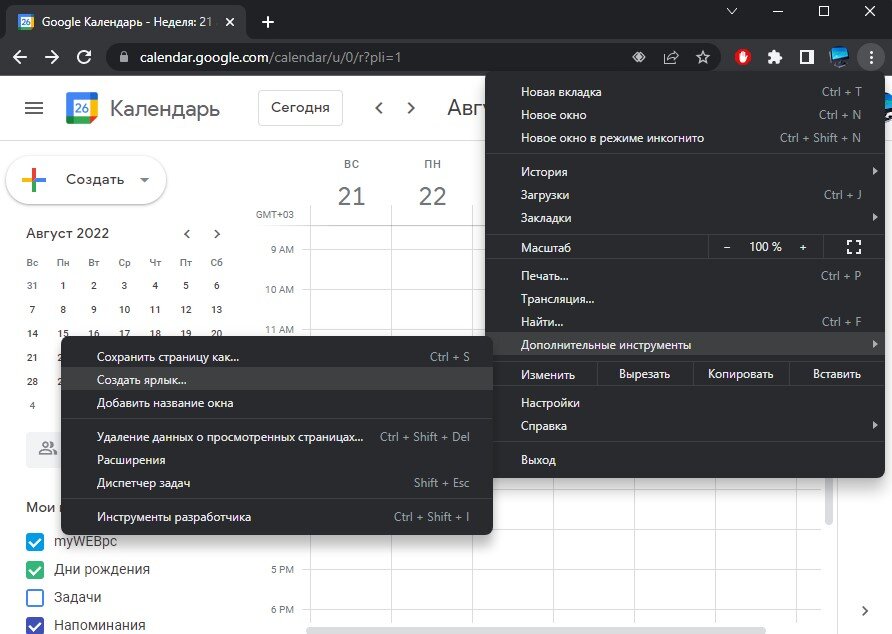 Как добавить Google календарь на панель задач Windows
