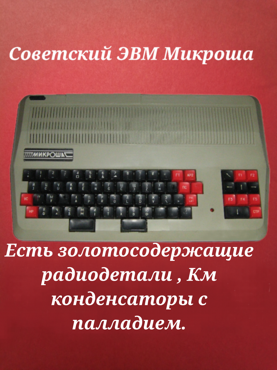 Всем здравствуйте! Хочу привести еще один пример, из советской электроники, в которой содержатся приемные радиодетали, и Эвм Микроша не исключение. Вряд ли, кто то найдет такому в современном мире применение, разве что пригодится радиолюбителям для самоделок, ну или коллекционерам. Если у Вас другое мнение по этому поводу пишите в комментариях. Лично я подобную старую советскую электронику, которая не пригодна в быту, разбираю на радиодетали, а потом сдаю скупщикам. Цены на радиодетали сейчас везде разные, можно найти где принимают и по хорошим ценам. В этом же советском ЭВМ достаточно хорошее содержание приемных и самых дорогих радиодеталей. На фото выше видно, что есть зеленые Км конденсаторы, одна рыжая, и микросхемы с позолотой. Также есть желтый разъем. Такой разъем приемный и может стоить неплохих денег. Сама клавиатура кнопки, могут быть как позолоченные, так и с посеребрёнкой . Вместо зеленых Км конденсаторов могут быть рыжие, от чего это зависит я не знаю, если Вы знаете пишит