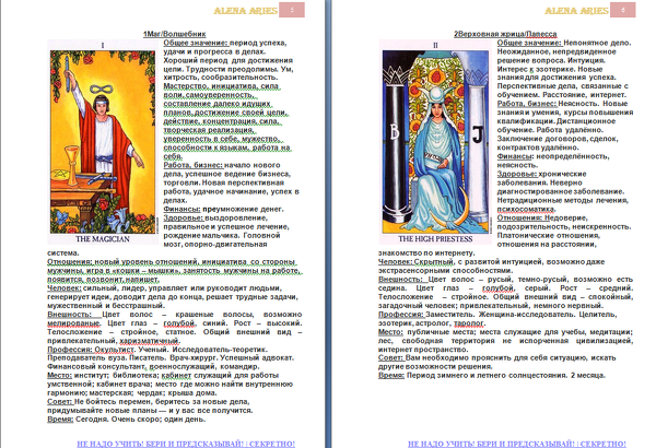 Да! Да! От нуля до профи за 5 секунд! Именно столько (5 секунд) будет идти к вам книга после оформления заказа. И вуаля... С книгой в руках вы уже сразу супер-таролог! В книге собраны все самые актуальные и событийные значения карт по 11 пунктам! ШОК! "БОЛЬШАЯ КНИГА ТАРО" по СКИДКЕ только 10 дней! ЭТО ВОЛШЕБНАЯ КНИГА ТАРО, КОТОРАЯ СРАЗУ, МГНОВЕННО ДАСТ ВАМ ВСЕ ЗНАНИЯ О ТАРО. ПРИЧЁМ УЧИТЬ НИЧЕГО НЕ НАДО! БЕРИ КНИГУ И ПРЕДСКАЗЫВАЙ ПРЯМО СРАЗУ! Вы любите карты Таро, хотите делать расклады, друзьям и знакомым, погадать или спросить совета у карт? Возможно, вы прирожденный таролог! Профессия Таро-консультанта набирает популярность, все больше людей задумываются, как легко и быстро освоить практику Таро. ALENA ARIES – опытный таролог, известный в Таро-среде блогер. В этой книге она делится своими многолетними знаниями и рассказывает, как стать специалистом таро мгновенно, без обучения. Если вы не мыслите свою жизнь без Таро, горите желанием помогать себе и людям, – эта книга поможет вам выра