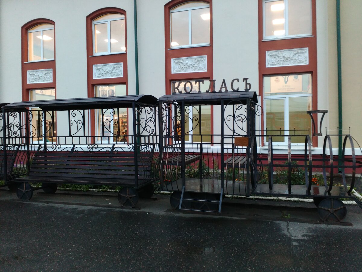 В последние годы жду остановки в Котласе с нетерпением. С перрона исчезли навязчивые цыганки, зато появились вот такие скамейки-паровозик.