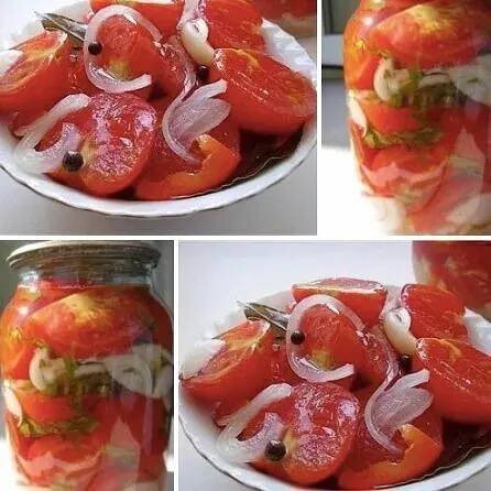 Маринованные дольками помидоры с луком по данному рецепту получаются пряные, упругие, вкусные и сладкие. Вы непременно захотите приготовить их на зиму еще и еще раз! Ингредиенты нa 3 л. банку: Маринад: Приготовление: Уложить в банки помидоры, болгарский перец, разрезанный вдоль на 4 части (вместе с семенами), лук, порезанный кольцами, чеснок, 1 небольшой стручок горького перца. Залить кипящим маринадом, слить его и снова вскипятить. Снова залить кипящий маринад, накрыть стерилизованными крышками и закатать. Перевернуть вверх дном и оставить до полого охлаждения. Приятного аппетита! Не забудьте подписаться!