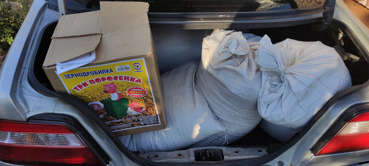 Как я уже говорил в предыдущем посте, мы купили зернодробилку для приготовления комбикорма. Вот зернодробилка и мешки с зерном. Кстати, очень хорошая штука эта дробилка. Я ей уже дробил не только зерно, но и стартовый корм для цыплят. Этот стартовый корм очень твердый и большого размера. Маленькие цыплята не могут его расклевать. А вот передробленный корм - за просто! Что касается самой дробилки - она шумная, но это для них нормально. Самая большая проблема для меня была в том, что когда начинаешь дробиль зерно, очень сильно летит пыль во все стороны. Нужно было что-то с этим делать. Сделал я вот так. Смотрите на фото. Собрал ножки для нее и сделал конус вниз из оставшегося сайдинга, которым обшивали дом. Получилось так, что все аккуратно ссыпается вниз. Пыль, конечно летит, но намного меньше. Еще в этой модели очень хлипкая задвижка и у нее нет фиксатора. Но для бюджетной версии дробилки вполне нормально. В целом я очень доволен приобретением.