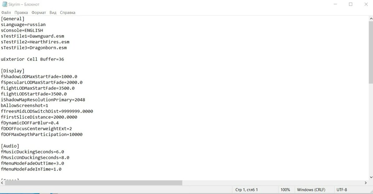 - Откройте файл Skyrim.ini (если не включено отображения формата файла, то просто Skyrim).