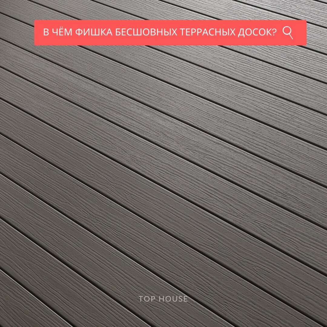 Главная фишка, мулька... к слову «мулька» словарь выдал 16 синонимов от изюминки до наркотика. Видимо, когда есть мулька — это мега круто. Так вот, у бесшовных досок мулька в том, что шпилька на туфельке мамзели не застрянет и мамзель не сбежит. Вам не придется её искать — найти и жениться. Вива свобода! Вива бесшовная террасная доска! У такой доски есть не только плюсы, но и минусы. Первые очевидны, а минусы видны только тем, кто сэкономит на мастерах и экспертах, и решит монтировать «на глаз». Если не предусмотреть отвод воды, чтобы избежать скопления, то доска будет постепенно деформироваться, и плоскость превратится в пики и кратеры. А это, поверьте, не самое прекрасное зрелище. В остальном бесшовная террасная доска красивое и эстетичное решение: креплений не видно, пыль не забивается в щели (не уборка, а экстаз), в целом покрытие смотрится более цельно, как литое. И в этом что-то определенно есть. #tophouse #топхаус