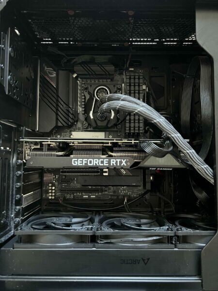 Разумеется, будучи дерзким экспериментатором и вообще смелым парнем, я прикрутил Arctic Liquid Freezer II 360 ко дну корпуса. В него встроено два огромных кулера, гонящих воздух наверх, и я предположил, что это как-то купирует неправильное расположение радиатора.