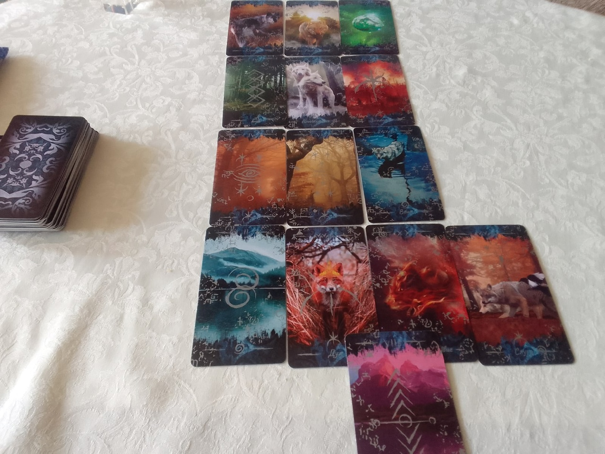 Доброго утра всем! Я хочу еще раз поблагодарить всех вас за поздравления и теплые слова. Благодарю Богов, Хранителей, Наставников, Высшие Силы и Вселенную за то, что все это стало возможным и что у меня есть такие замечательные друзья. Совершенно неожиданно ко мне пришла такая вот прекрасная колода и сегодня я сделаю на ней для вас несколько раскладов, по традиции, начнем мы с совета дня. Посмотрите, какая она шикарная, все же. Мы сейчас, в данный период жизни, отворачиваемся от чего-то, пока мы идем, можно так сказать, наощупь, не зная точного направления, но информация, приходящая нам из пространства, дает понять, что у нас все хорошо. Даже если сейчас у нас есть трудности. Тут, кстати, есть начало отношений, или переход из одной фазы в другую. В итоге, карты показывают, что все будет хорошо, как -никак 4 и 6 жезлов здесь, но нам придется понимать и принимать свою темную сторону. В итоге вы сможете выйти на свою собственную дорогу, безусловно. И у человека нового тоже будет предчувст