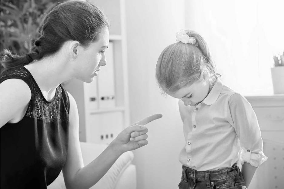 В отрицательной модели взаимоотношений, сначала угрозы из разряда "не пойдешь гулять пока не сделаешь уроки", затем с повышением голоса, применение физической силы или лишением чего-то (например не получишь компьютер).