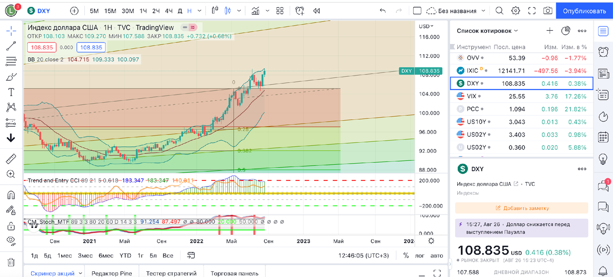 индекс доллара dxy , мы видим длинные тени свечей ,доллар сначала сильно упал ,затем сильно вырос ,если вы помните что писала я ранее,тут бы очень хотелось увидеть индекс доллара выше 110 ,115 было бы просто шикарно ,но нужно помнить что мы на рекордных уровнях 🔥 , 💣💣💣бычья ловушка , остается только быть терпеливой , так как это довольно критическая -очень страшная зона , многие тут уже виидят двойную вершину ,я не знаю я вижу уровни , самое важно помните про пик ,когда мы его покажем и что обычно происходит потом 😁, есть метод вайкоффа посмотрите у меня на канале - распределение может тут быть 👍🏻,