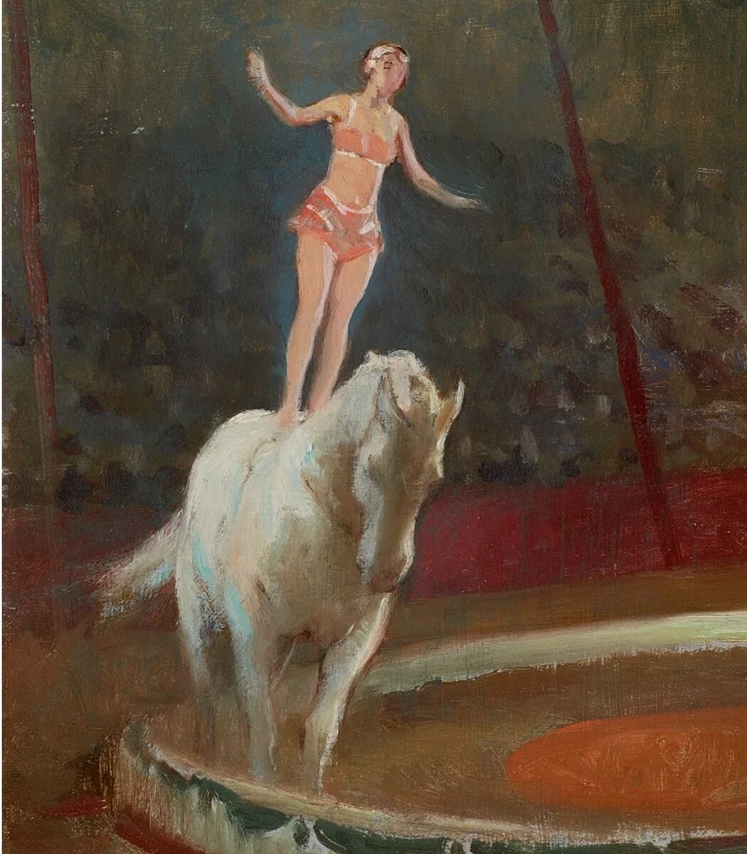 - Обычно я выступаю в лиловом костюме и шляпе. Такая большая шляпа, наподобие сомбреро, с пером. В руках багет – это такой полуобруч, через который надо перепрыгивать, как через скакалку, стоя на бегущей лошади. Мою любимую лошадь зовут Жозефина. Она альбинос. Цирк должен поражать зрителей, потому не всякая масть подходит для цирковых выступлений. Тусклые масти будут сливаться с фоном манежа. Подойдут серые в яблоках, вороные, пегие, золотисто-гнедые, ну и конечно, альбиносы. У нас по три лошади каждой масти. Всего двенадцать лошадок. А альбинос только один, потому – мой любимый! Жозефиночка – талант! Она лучше всех делает вольт. Ты знаешь, что такое вольт?