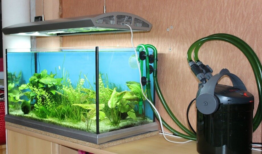 Одним из необходимых приборов для аквариума является компрессор. Он поддерживает биологическое равновесие во всем аквариуме. Мощность компрессора выбирают ориентируясь на объём аквариума. При значительном объёме выбирают более мощное оборудование. Компрессор обеспечивает аэрацию воды, насыщает её кислородом. Это крайне важно для жизнедеятельности любого вида рыб и растений. Днем аквариумные растения поглощают углекислый газ и выделяют кислород, поэтому в данное время суток компрессор применяется по минимуму. Ну, а ночью процесс фотосинтеза не происходит, и в результате уровень углекислого газа повышается. Благодаря чему происходит отрицательное воздействие на рыбок и в целом на всю биологическую среду аквариума. Благодаря компрессору происходит нагнетание воздуха в воду. Данный процесс можно наблюдать по струе идущих со дна пузырьков. Они могут иметь различный диаметр, чем он меньше тем больше кислорода подаётся. Кроме того компрессорное оборудование повышает уровень циркуляции воды, з