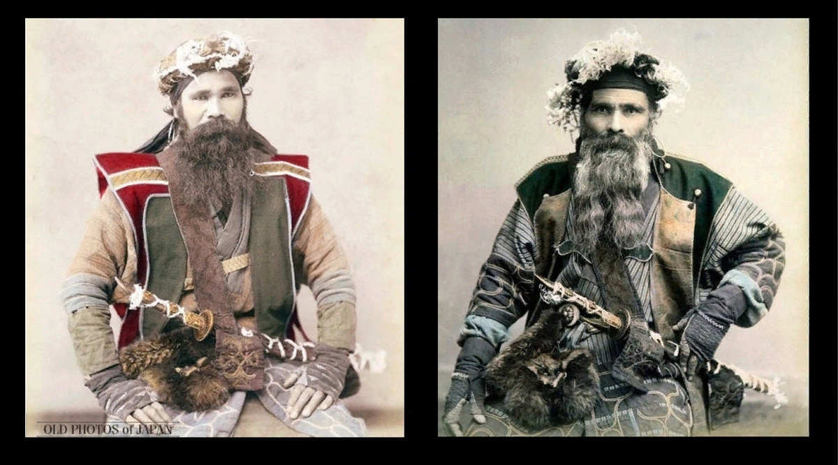 Когда в Японию прибыли русские моряки, они на полном серьёзе приняли Айнов за своих. Действительно, глядя на старинные гравюры-миниатюры и на фотографии Айнов прошлого-позапрошлого веков – можно без труда принять их за казаков, купцов, крестьян средней полосы России.