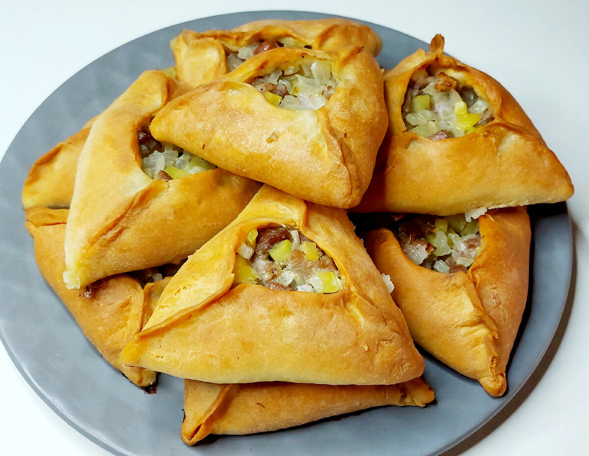 Очень вкусные пироги с сочной начинкой из филе индейки, картофеля и лука. Тесто получается мягкое и сдобное, его совсем не сложно приготовить, а главное никаких дрожжей. Быстро замесил тесто, добавил начинку и в духовку. Всё очень быстро и просто! Вместо индейки можно добавить куриное филе, говядину или баранину, только выпекать примерно +/-1 час, чтобы мясо успело приготовиться. В моей семье, практически сразу, всё съели🤗 Ингредиенты для теста: 1. Кефир - 250 мл. 2. Масло сливочное - 100 гр. 3. Яйцо - 1 шт. 4. Соль - 1/2 ч.л. 5. Сахар - 1 ч.л. 6. Мука - (+/-)450 гр. 7. Разрыхлитель - 8 гр. Ингредиенты для начинки: 1. Филе бедра индейки - 400 гр. 2. Картофель - 200 гр. 3. Лук - 2 ср.шт. 4. Соль, перец чёрный - по вкусу 5. Масло сливочное - 50 гр. Приготовление теста: 1. В миске хорошо смешать венчиком: яйцо, соль, сахар, кефир и растопленное (остывшее) сливочное масло. 2. Постепенно подсыпая проссеянную муку с разрыхлителем, замесить мягкое тесто. Приготовление начинки: 1. Лук мелк